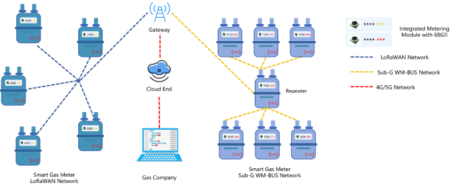 智能燃气表在通过6862i实现数据精准检测的同时,还能通过无线解决方案,助力数据的高速、稳定传输。